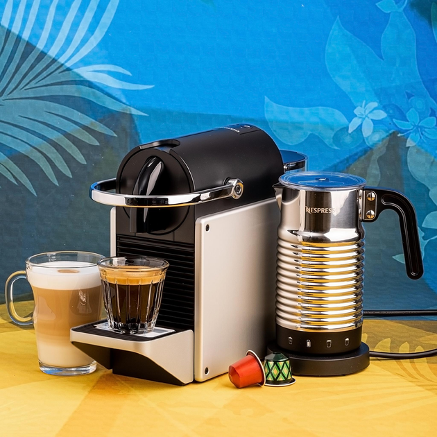 Кавомашина капсульна Nespresso Pixie D62 Electric Aluminium і Капучинатор (Спінювач молока) AEROCINO 4 Milk frother