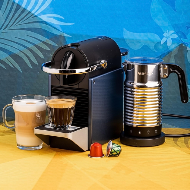 Кавомашина капсульна Nespresso Pixie D62 Dark Blue і Капучинатор (Спінювач молока) AEROCINO 4 Milk frother