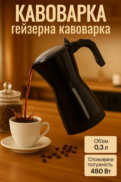 Кавоварка електрична Camry Moka CR 4415 300 мл Чорна
