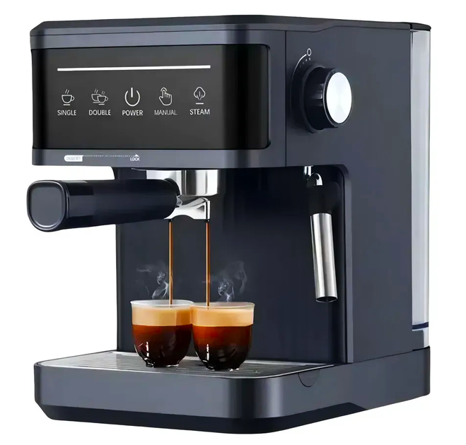 Рожкова кофемашина з капучинатором, 20 бар, 3 режими екстракції, індикатор температури та парова система для еспресо, латте
