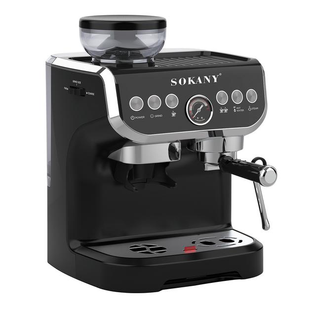 Еспресо-машина з кавомолкою та капучинатором 20 бар 1560 Вт для кав'ярень 2 л чорна