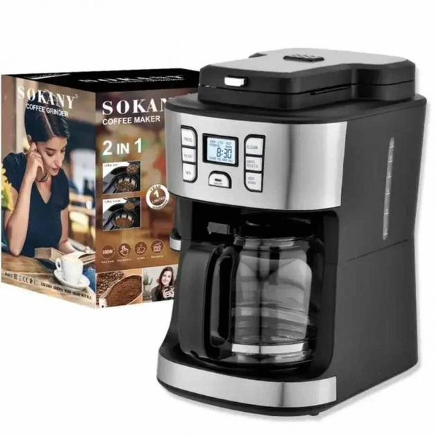 Автоматична кавоварка SOKANY з капучинатором 1.8л 950вт