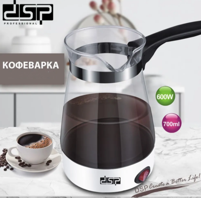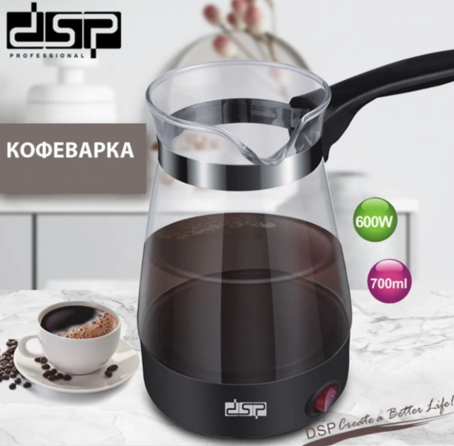 Електрична скляна турка DSP 600W для кави Електротурка на 700 мл. Чорна