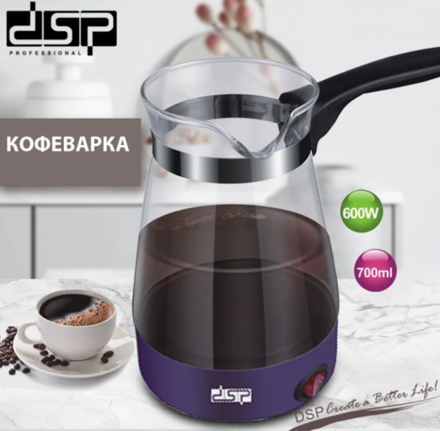 Електрична скляна турка DSP 600W для кави Електротурка на 700 мл. Фіолетовий