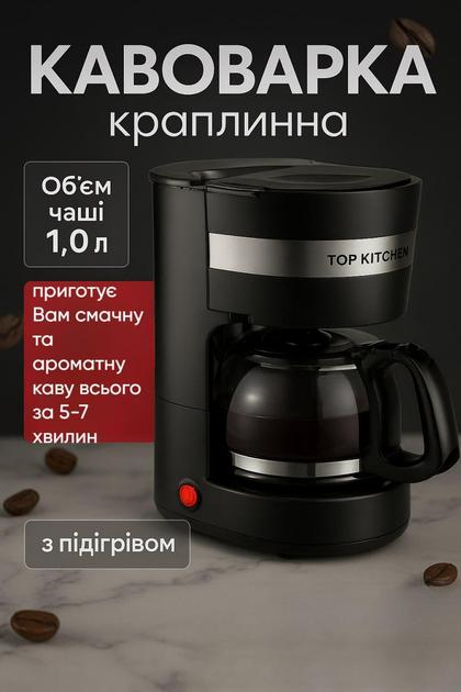 Кавоварка електрична Top Kitchen TK00220 — крапельна, 1 л, з антипкапельною системою, нейлоновий фільтр