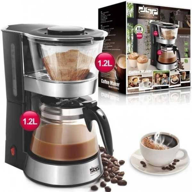 Кавоварка 1.2 л, 800 Вт, скляна чаша, чорна
