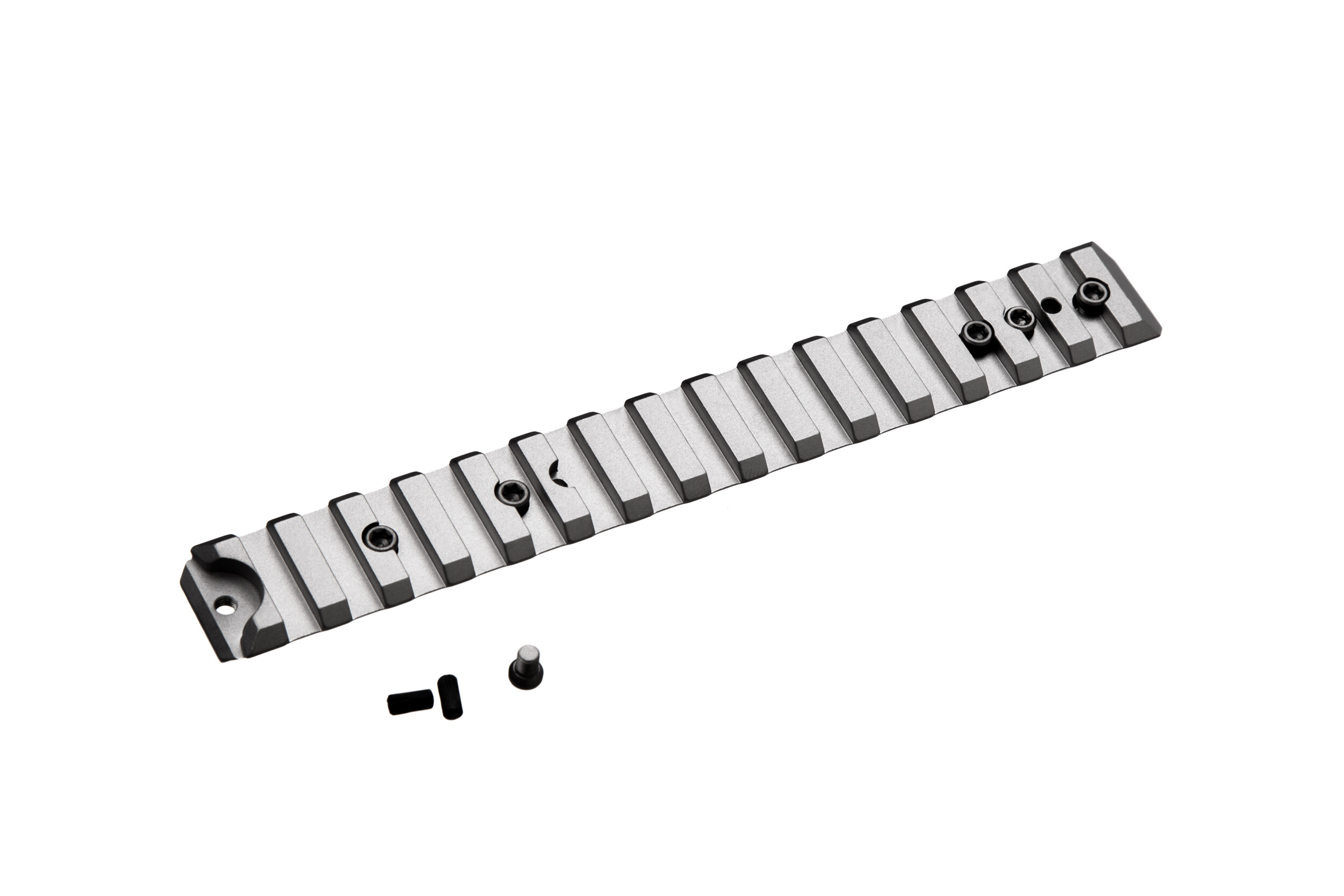 Особливості - Виготовлена на прецизійних верстатах з алюмінієвого сплаву 6061 T6 для надання максимальної міцності та довговічності - Матове чорне тверде тверде нанесене анодуванням зносостійке покриття - Три планки пікатінні, що відповідають вимогам 1913 MIL-STD, забезпечують максимальну гнучкість під час вибору та встановлення навісних пристосувань - Встановлення не потребує