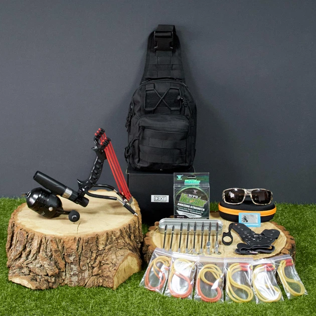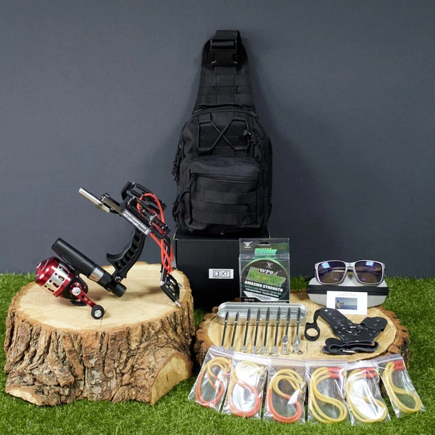 ТРОФЕЙНИЙ Набір рогатка для риболовлі та полювання | Мисливська рогатка з упором і котушкою Боуфішинг