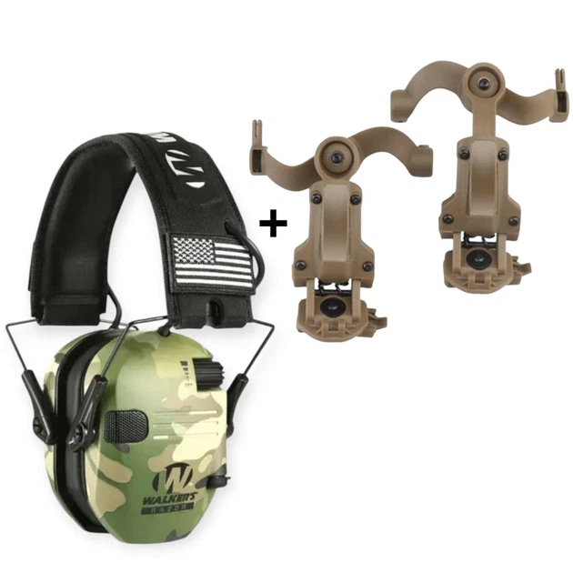Активні шумозаглушувальні навушники Walker's Razor для безпеки органів слуху з кріпленнями на шолом каску в комплекті OPS Co
