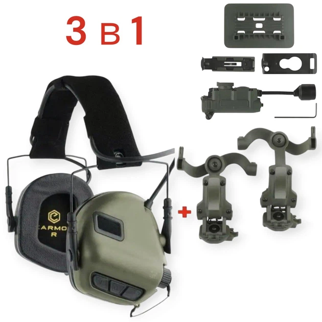 3 в 1 Активні навушники EARMOR M31 з кріпленням чебурашки + тактичний ліхтар на військовий шолом