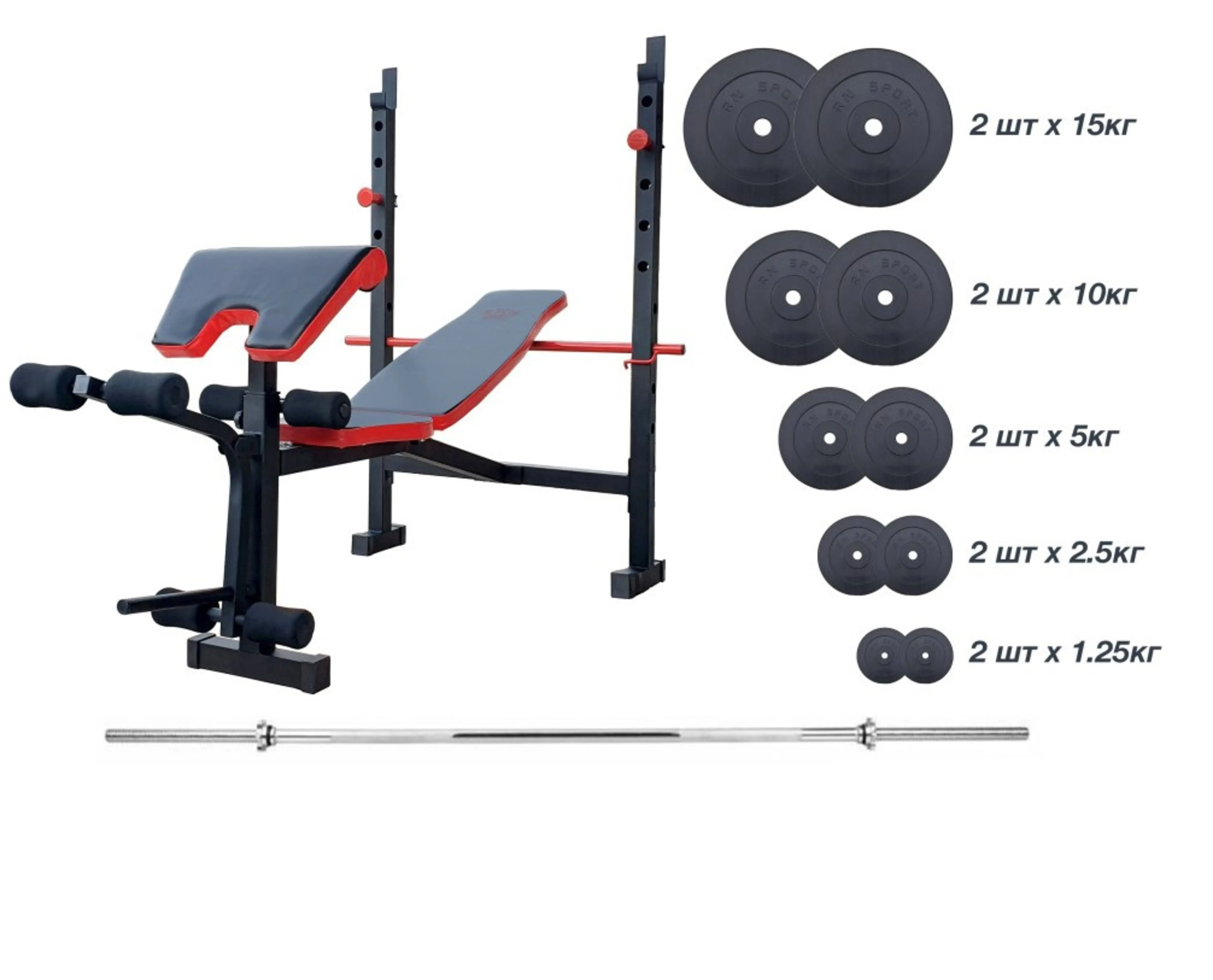 Лавка для жиму RN-Sport з верхньою тягою та тренажерами штанга 75 кг