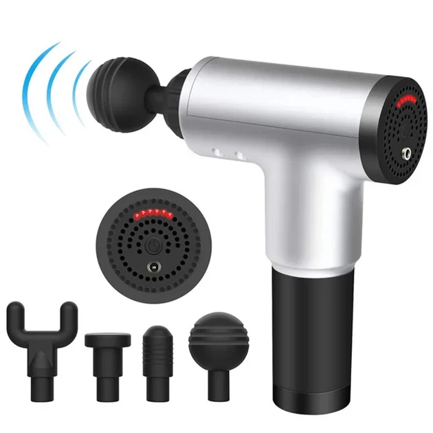 Перкусійний масажер з 4 насадками Gun Massager, Сірий / Масажер для тіла / Ручний масажер