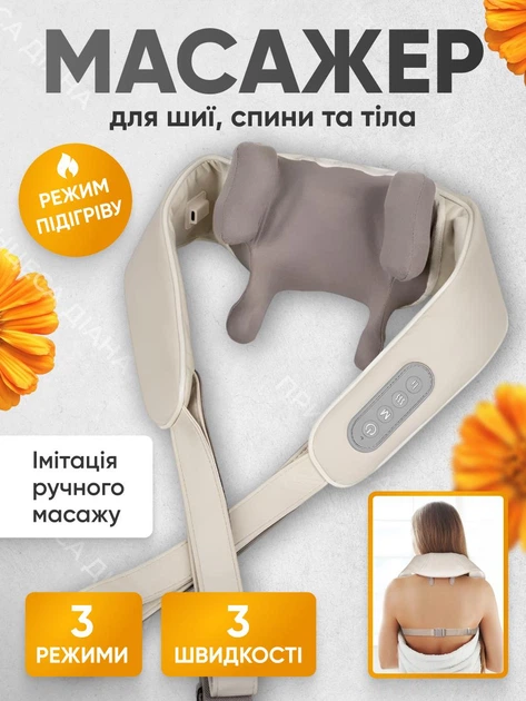 Електричний масажер для шиї спини тіла електромасажер бездротовий з інфрачервоним підігрівом, бежевий