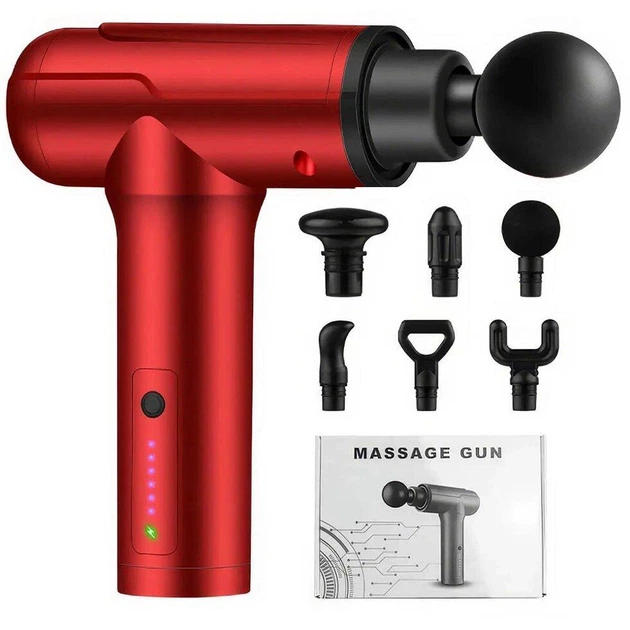 Масажер для тіла 6 швидкостей 4 насадки USB на акумуляторі, ударний масажний пістолет 13,2*13,4*5см, червоний