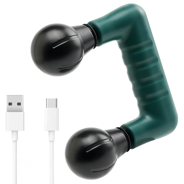 Ручний акумуляторний перкусійний вібромасажер для тіла з ергономічною ручкою масажними головками 2 штуки (479687-Prob) Зелен