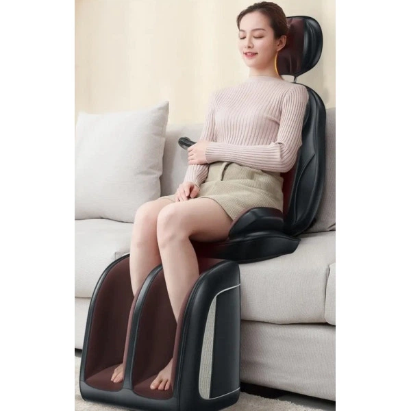 Масажне крісло-накидка Benbo AM-607G багатофункціональна з прогріванням роликовим вібро шиацу масажем Чорно-коричневий
