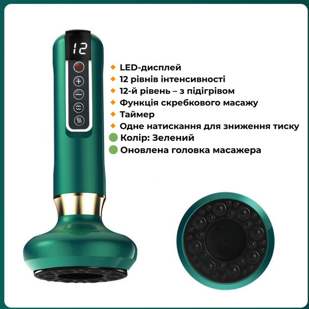 Антицелюлітний вакуумний масажер для всього тіла, 12 режимів роботи, з інфрачервоним прогріванням, USB Type-C, зелений (4070