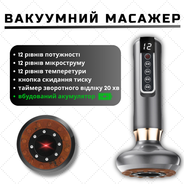 Вакуумний масажер баночний з функцією нагрівання акумуляторний для тіла антицелюлітний