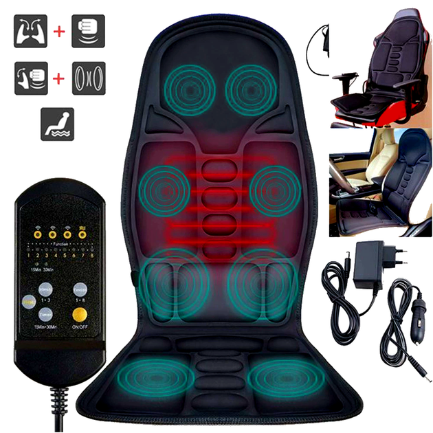 Массажна подушка-накидка на крісло 12/220V з підігрівом з пультом 5 програм,