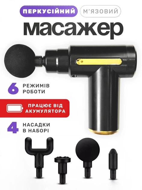 Перкусійний портативний масажер для тіла м'язовий ударний Fascial Gun EP акумуляторний (з 4 насадками для масажу рук, ніг, с