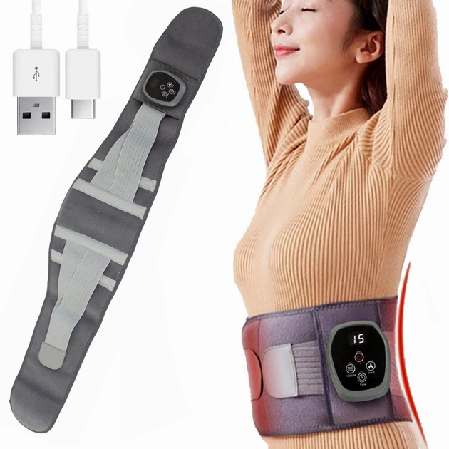Масажний бандаж для попереку 2000 мАг USB акумуляторний вібромасажер для схуднення спини