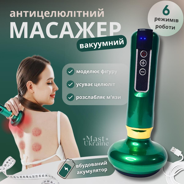 Акумуляторний вакуумний антицелюлітний масажер для тіла Cupping Massager Green