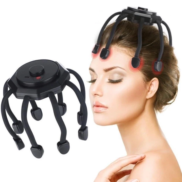 Масажер для голови у формі восьминога Head Massager, 12 лапок, 3 режими, акумуляторний
