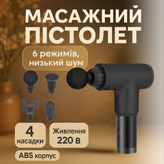 Масажний пістолет 6 режимів для спини м’язів ніг масажер 4 насадки 220В ручний вібромасажер для тіла