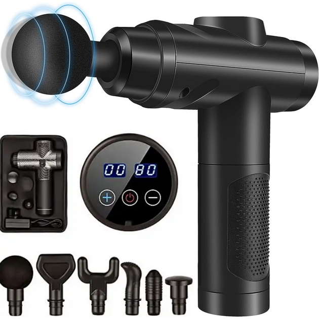 Масажний пістолет ALDOM із 6 масажними головками та 30 швидкостями