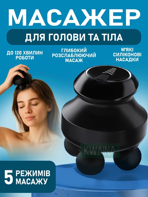 Масажер для голови та тіла з 5 режимами, вібраційний, акумуляторний, бездротовий, чорний