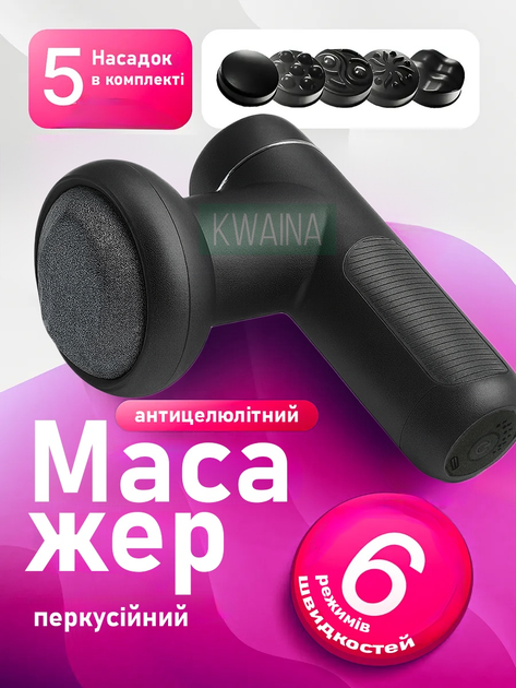Масажер електричний антицелюлітний для ніг, шиї та спини ручний + 5 насадок, вібромасажер від USB, Чорний