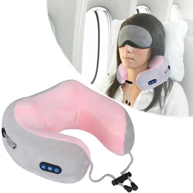 Подушка масажер для шиї з пам'яттю U-Shaped Upgrade Vibration Pillow, від USB / Бездротова масажна подушка