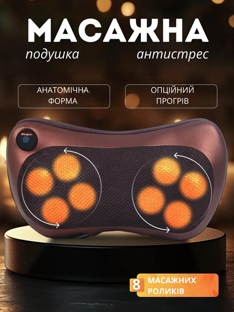 Масажна подушка для шиї спини та плечей з підігрівом Massage Pillow CHM-8028 масажер автомобільний та для дому на 8 роликів