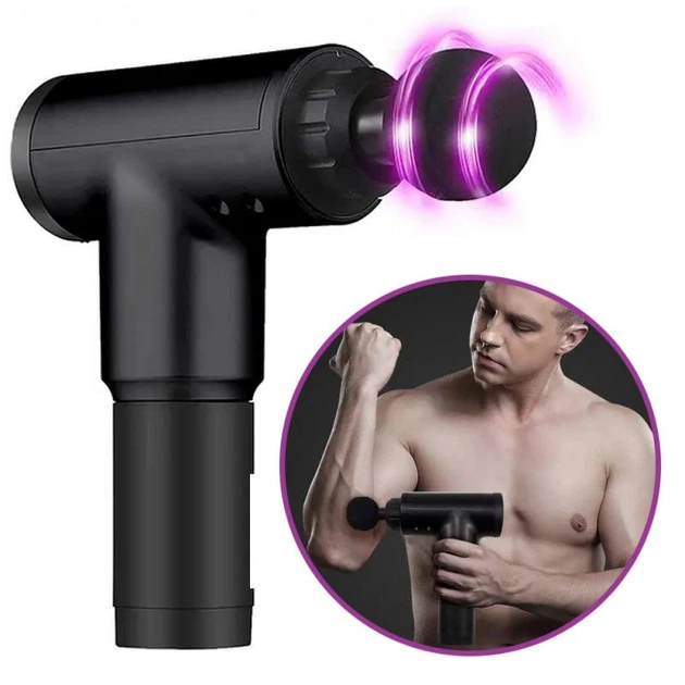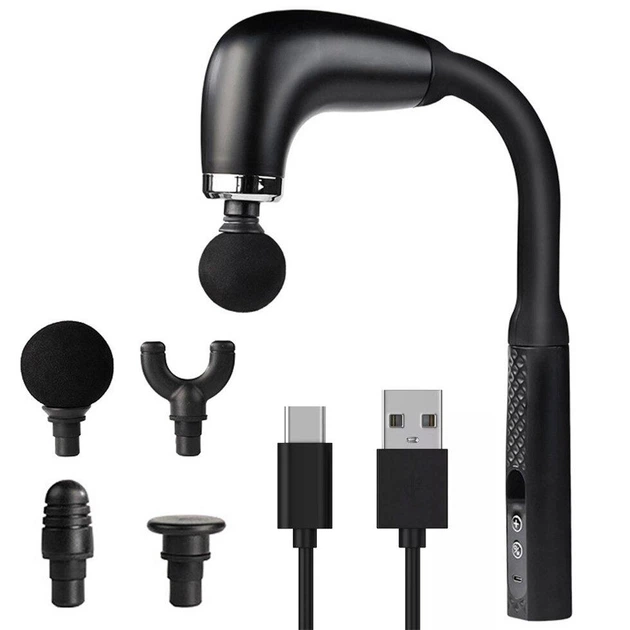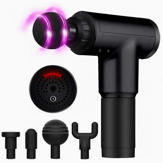 Перкусійний масажер для тіла з 4 насадками, USB, чорний / Акумуляторний вібромасажер ручний