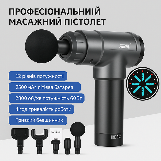 Ручний масажний пістолет Fascial Gun 8121 для глибокого масажу всього тіла