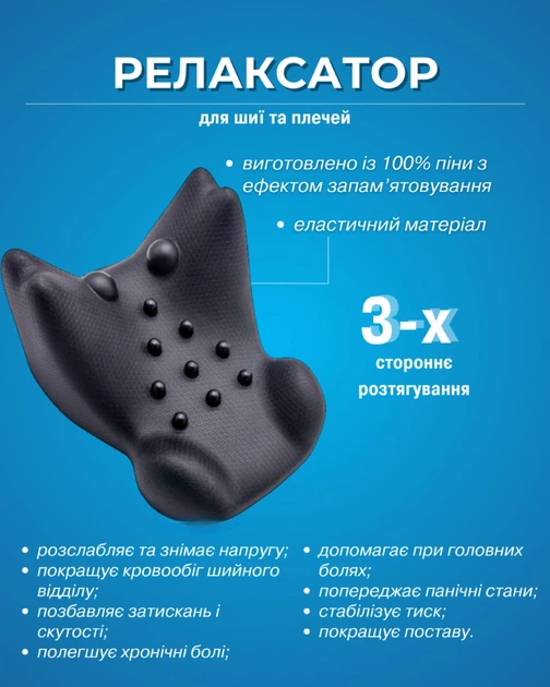 Масажер для спини і шиї масажна подушка релаксатор синій