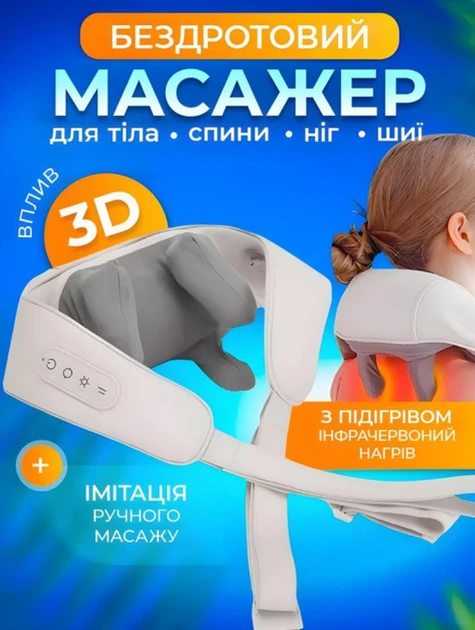Масажер для шиї та плечей на акумуляторі з ІЧ-підігрівом Neck massager електричний (2104618544)