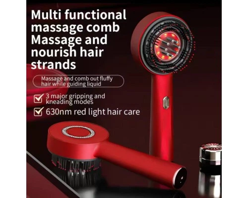 Масажна гребінець для голови, віброгребінець для волосся, фототерапія з червоним та синім світлом, масажна щітка, USB 1600 м