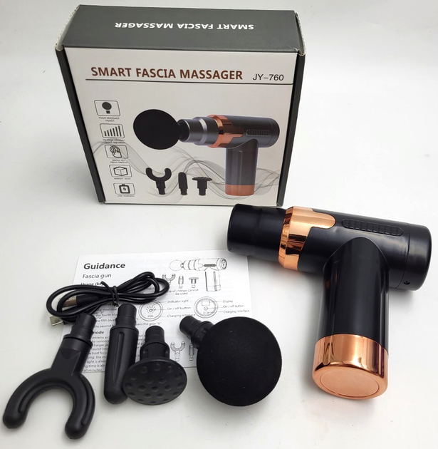 М'язовий ударний масажер ручний акумуляторний перкусійний 4 насадки для м'язів тіла вібромасажер пістолет FASCIAL GUN JY-760