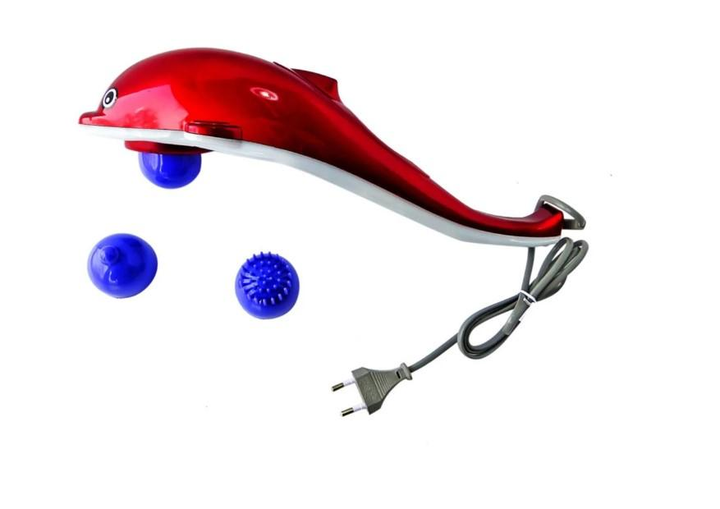 Ручний масажер Дельфін великий Dolphin для тіла спини та шиї - 3 насадки 2 швидкості масажу, червоний