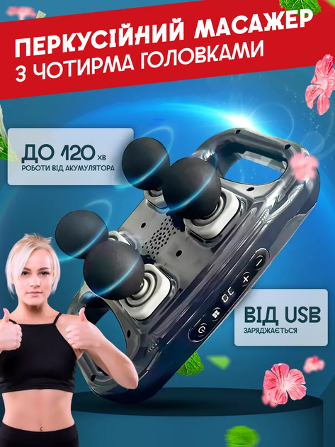 Масажер перкусійний Four fascia guns mixed colors AND LY-672 для тіла, рук, ніг, спини 4 головки
