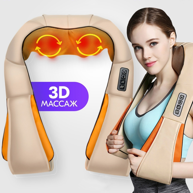 Масажер роликовий Shiatsu Massager of Neck Kneading для всього тіла з підігрівом 4 кнопки Бежевий