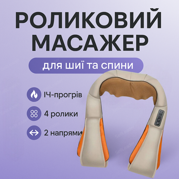 Інфрачервоний роликовий масажер для шиї, спини та плечей Massager of Neck Kneading з підігрівом та розслаблюючим ефектом