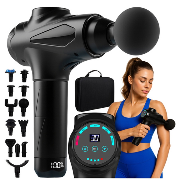 Масажер для тіла перкусійний з 6 масажними головками, акумуляторний ручний масажер для м'язів з 9 режимами та 20 швидкостями