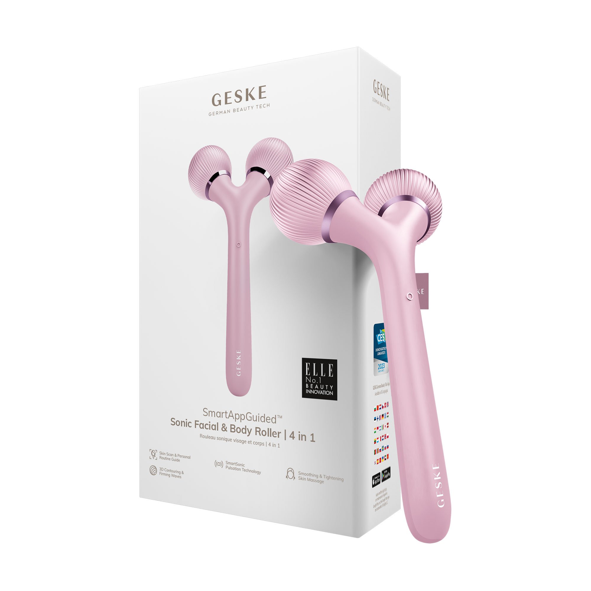 Електронний звуковий ролик для обличчя та тіла Geske Sonic Facial & Body Roller 4 в 1 рожевий