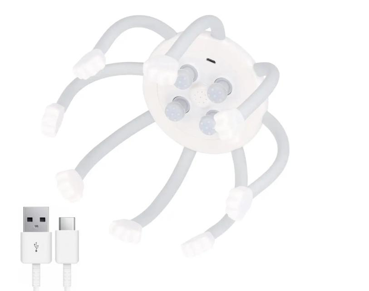 Масажер для голови K108, Білий / Електричний ручний масажер для голови у формі восьминога