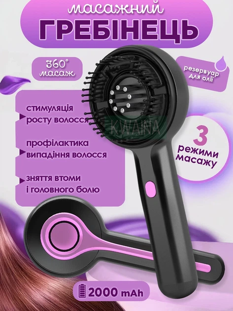 Багатофункціональний масажний гребінець для голови для росту волосся з олійним рідким аплікатором, 3 режими, USB, акумулятор