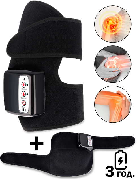 Бандаж Масажер вібраційний для коліна плеча та ліктя UKC Нагрівальний універсальний Чорний Інфрачервоний