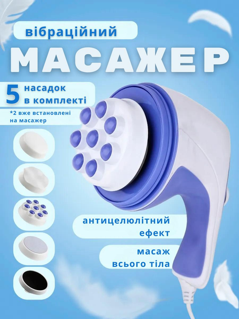 Вібраційний масажер для тіла з антицелюлітним ефектом, 5 насадок