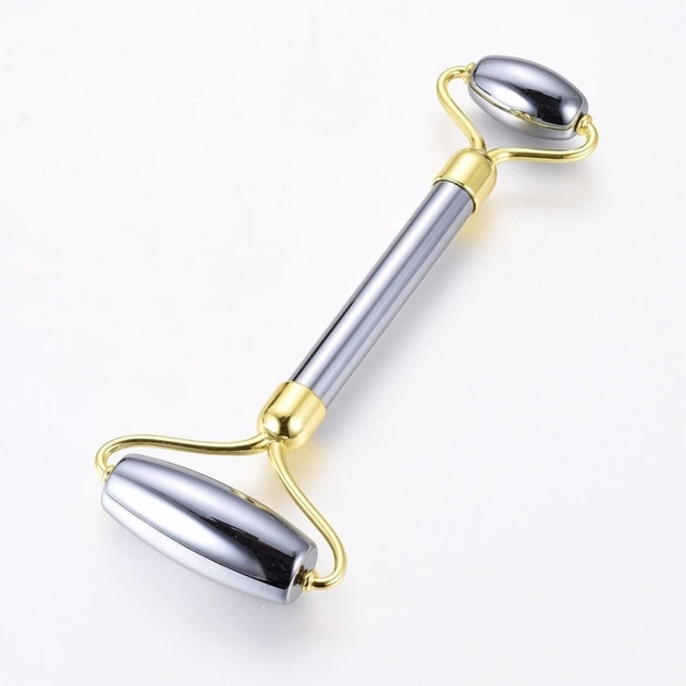 Масажер для обличчя Терагерцевий Камінь + Латунь, Сірий, метал: Золото, 114x56x18.5мм, 1 шт